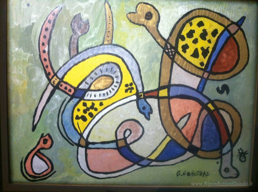 Ti offriamo una riproduzione artigianale su tela dell'opera famosa 'Serpenti multicolores' di Gaston Chaissac, dal Museo delle Riproduzioni.