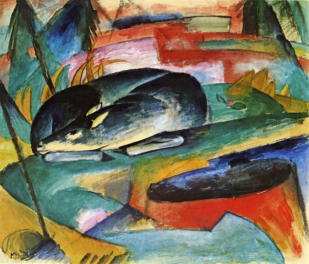 Ti offriamo una riproduzione artigianale su tela dell'opera famosa 'Sleeping Deer' di Franz Marc, dal Museo delle Riproduzioni.
