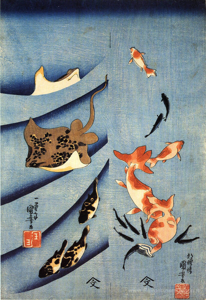 Scoprite l'incanto dei dipinti a olio italiani, dove l'arte si sposa con la tradizione per dare vita a opere uniche e affascinanti. Tra queste meraviglie, spicca il capolavoro Stingrays del maestro giapponese Utagawa Kuniyoshi, un artista noto per la sua abilità nel catturare la bellezza e l'energia della natura attraverso una tecnica raffinata e dettagliata. Kuniyoshi, rappresentante del periodo Edo, ha saputo fondere elementi tradizionali e innovativi, creando opere che raccontano storie affascinanti e coinvolgenti.