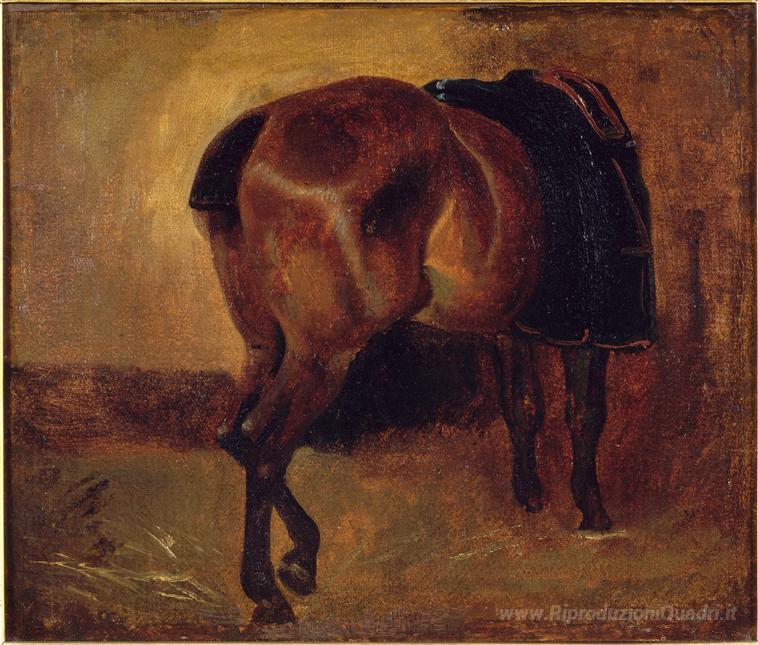 Ti offriamo una riproduzione artigianale su tela dell'opera famosa 'Studio per Bay cavallo visto da dietro' di Theodore Gericault, dal Museo delle Riproduzioni.