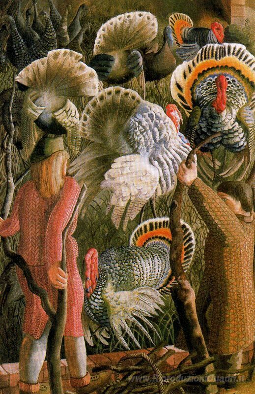 Ti offriamo una riproduzione artigianale su tela dell'opera famosa 'Tacchini Perus' di Stanley Spencer, dal Museo delle Riproduzioni.