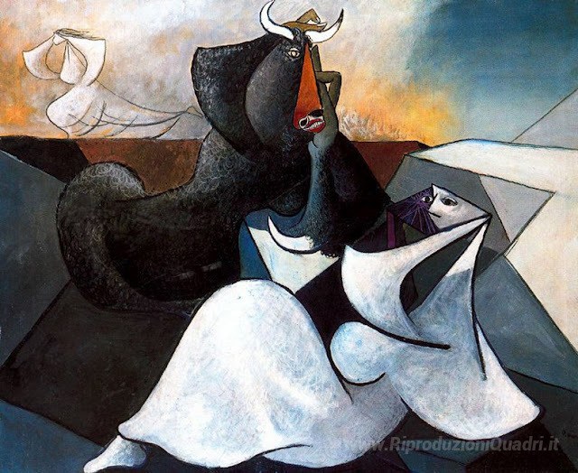 Ti offriamo una riproduzione artigianale su tela dell'opera famosa 'Tauromaquia' di Oscar Dominguez, dal Museo delle Riproduzioni.