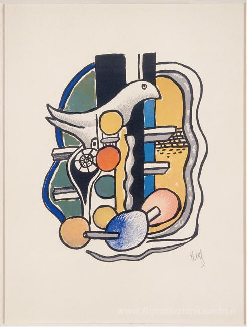 Ti offriamo una riproduzione artigianale su tela dell'opera famosa 'The Dove (Natura morta con Bird)' di Fernand Leger, dal Museo delle Riproduzioni.