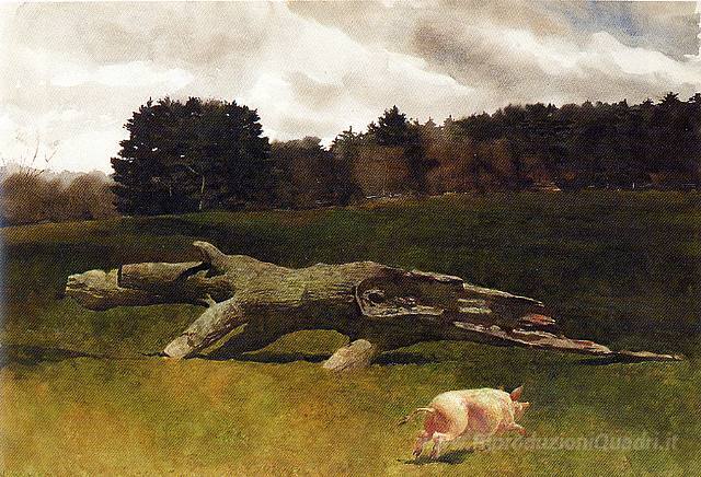 Ti offriamo una riproduzione artigianale su tela dell'opera famosa 'The Runaway Pig' di Jamie Wyeth, dal Museo delle Riproduzioni.