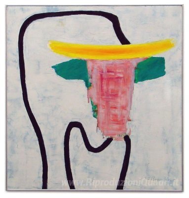 Ti offriamo una riproduzione artigianale su tela dell'opera famosa 'Toro' di Roger Raveel, dal Museo delle Riproduzioni.