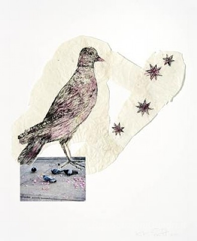Ti offriamo una riproduzione artigianale su tela dell'opera famosa 'Uccelli con Stelle' di Kiki Smith, dal Museo delle Riproduzioni.