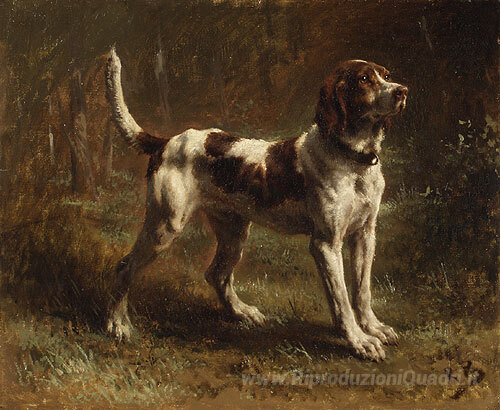 Ti offriamo una riproduzione artigianale su tela dell'opera famosa 'Un Limier Briquet Hound' di Rosa Bonheur, dal Museo delle Riproduzioni.