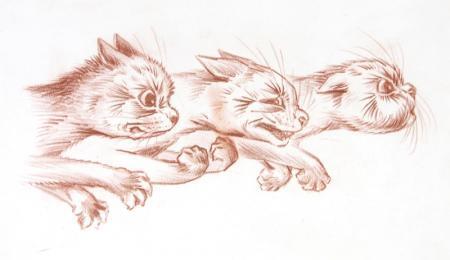 Ti offriamo una riproduzione artigianale su tela dell'opera famosa 'Una folle corsa' di Louis Wain, dal Museo delle Riproduzioni.