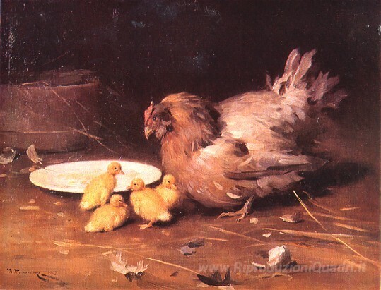 Ti offriamo una riproduzione artigianale su tela dell'opera famosa 'Una gallina' di Mykola Pymonenko, dal Museo delle Riproduzioni.