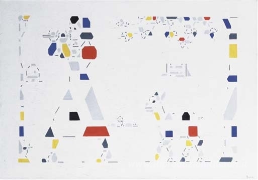 Ti offriamo una riproduzione artigianale su tela dell'opera famosa 'Una ragazza che suona il flauto con capra' di Bart van der Leck, dal Museo delle Riproduzioni.