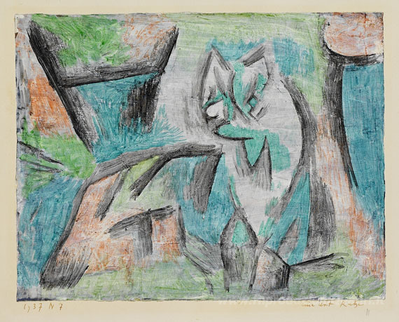 Ti offriamo una riproduzione artigianale su tela dell'opera famosa 'Una sorta di gatto' di Paul Klee, dal Museo delle Riproduzioni.