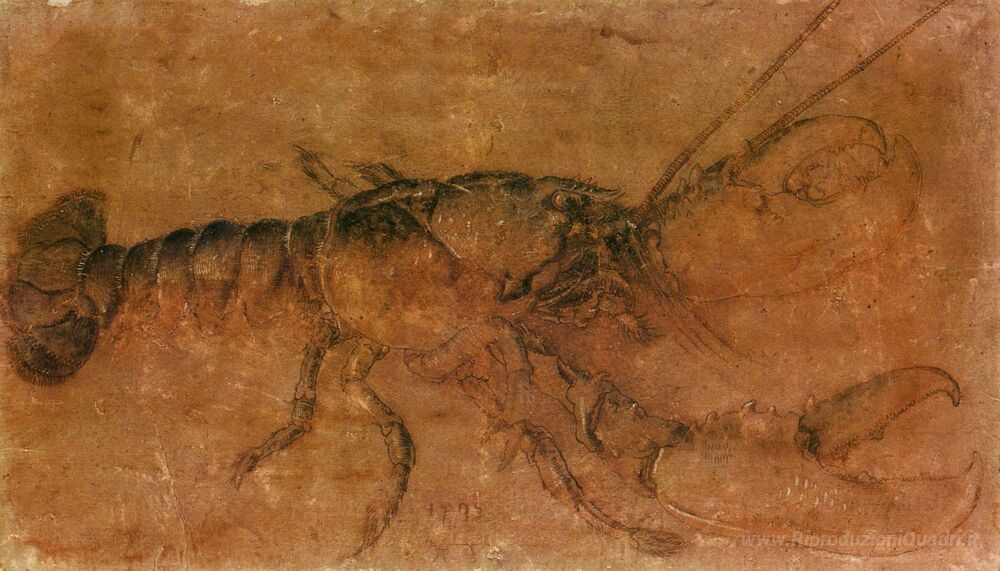 Ti offriamo una riproduzione artigianale su tela dell'opera famosa 'Un'aragosta' di Albrecht Durer, dal Museo delle Riproduzioni.