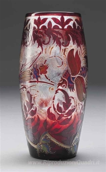 Ti offriamo una riproduzione artigianale su tela dell'opera famosa 'Cigales Vase' di Emile Galle, dal Museo delle Riproduzioni.
