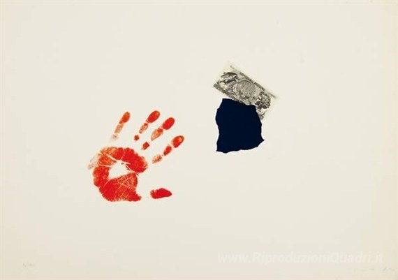 Ti offriamo una riproduzione artigianale su tela dell'opera famosa 'Impronte d'Artista' di Giulio Turcato, dal Museo delle Riproduzioni.
