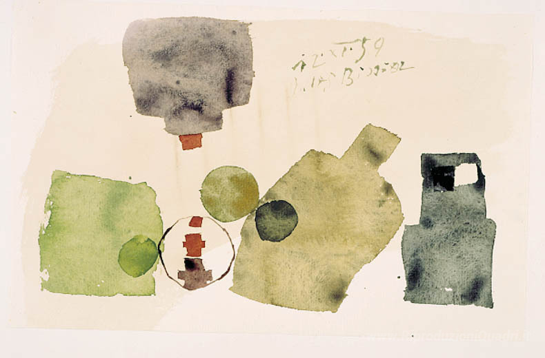 Ti offriamo una riproduzione artigianale su tela dell'opera famosa '12.XI.59' di Julius Bissier, dal Museo delle Riproduzioni.
