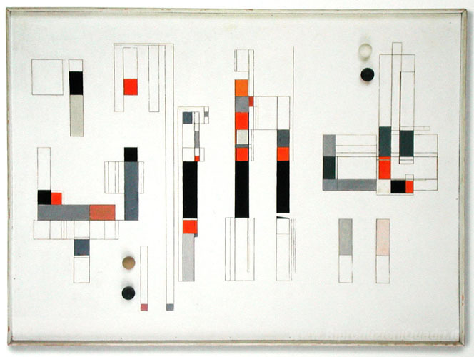 Ti offriamo una riproduzione artigianale su tela dell'opera famosa '4 sfere' di Marcelle Cahn, dal Museo delle Riproduzioni.