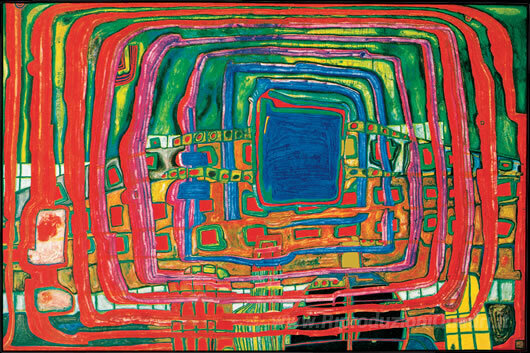 Ti offriamo una riproduzione artigianale su tela dell'opera famosa '433 L'ho ancora non so' di Friedensreich Hundertwasser, dal Museo delle Riproduzioni.