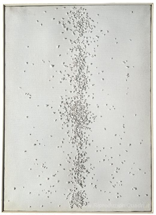 Ti offriamo una riproduzione artigianale su tela dell'opera famosa 'Achrome' di Piero Manzoni, dal Museo delle Riproduzioni.