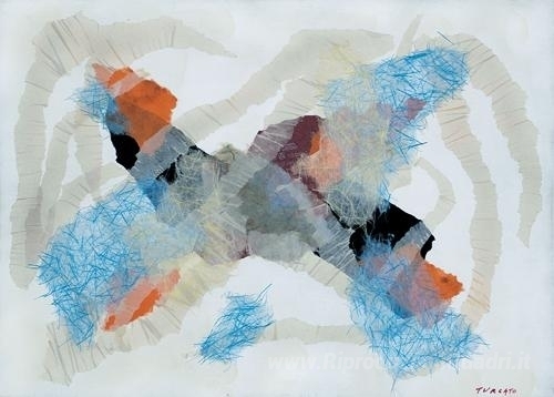 Ti offriamo una riproduzione artigianale su tela dell'opera famosa 'Acropoli' di Giulio Turcato, dal Museo delle Riproduzioni.