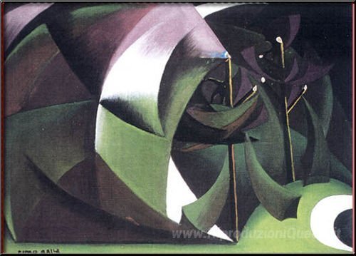 Ti offriamo una riproduzione artigianale su tela dell'opera famosa 'Alberi Mutilati' di Giacomo Balla, dal Museo delle Riproduzioni.