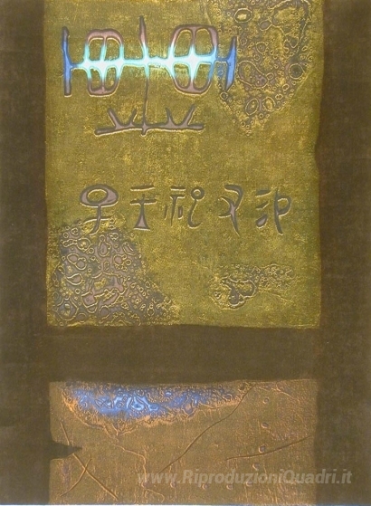 Ti offriamo una riproduzione artigianale su tela dell'opera famosa 'Antica Scrittura' di Hiroyuki Tajima, dal Museo delle Riproduzioni.