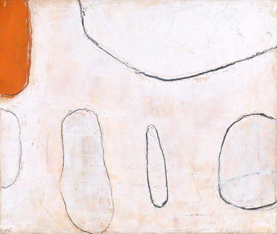 Ti offriamo una riproduzione artigianale su tela dell'opera famosa 'Arancione e bianco' di William Scott, dal Museo delle Riproduzioni.