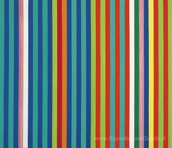 Ti offriamo una riproduzione artigianale su tela dell'opera famosa 'Arancione Twitter' di Gene Davis, dal Museo delle Riproduzioni.