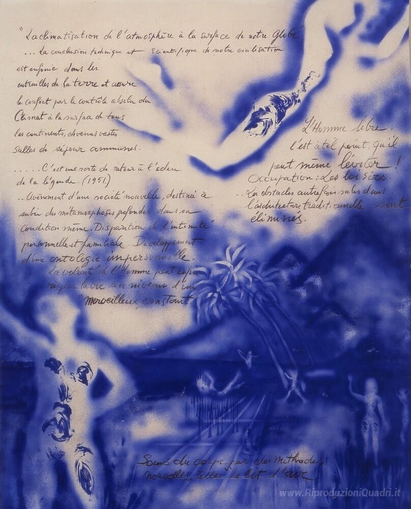Ti offriamo una riproduzione artigianale su tela dell'opera famosa 'Assemblaggio di Usato Rulli di vernice' di Yves Klein, dal Museo delle Riproduzioni.