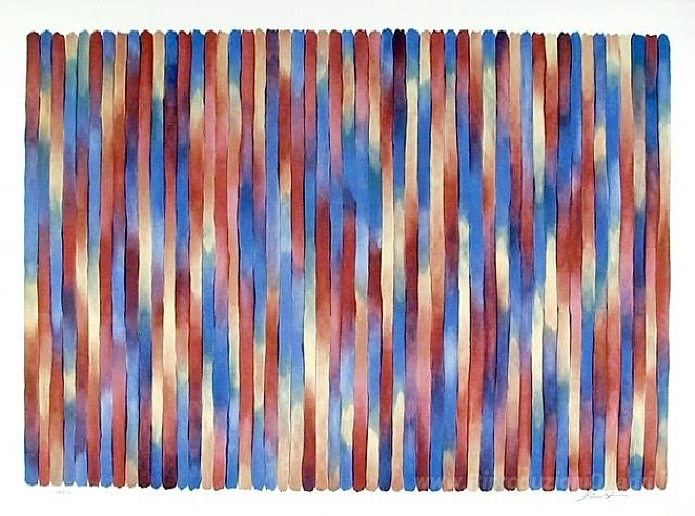 Ti offriamo una riproduzione artigianale su tela dell'opera famosa 'Bangio' di Gene Davis, dal Museo delle Riproduzioni.
