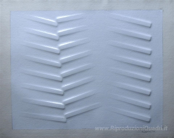 Ti offriamo una riproduzione artigianale su tela dell'opera famosa 'Bianco' di Agostino Bonalumi, dal Museo delle Riproduzioni.