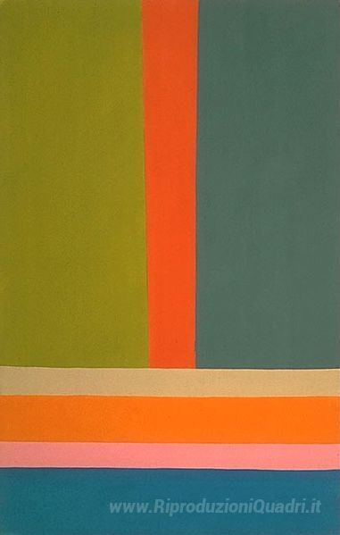 Ti offriamo una riproduzione artigianale su tela dell'opera famosa 'Big A' di Jack Bush, dal Museo delle Riproduzioni.