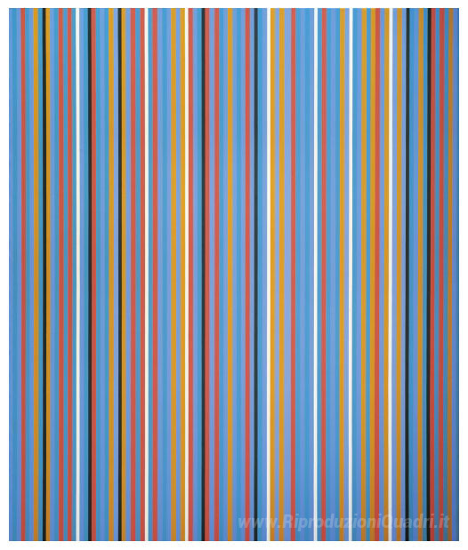 Ti offriamo una riproduzione artigianale su tela dell'opera famosa 'Big Blu' di Bridget Riley, dal Museo delle Riproduzioni.