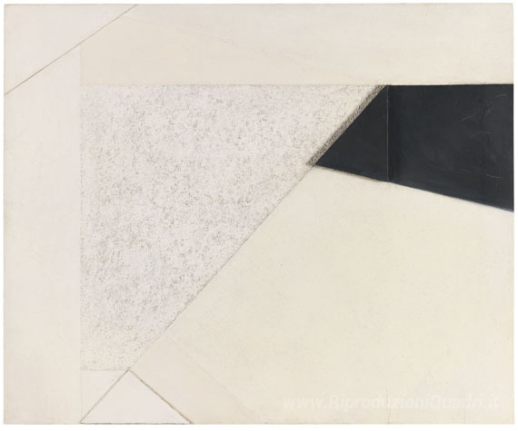 Ti offriamo una riproduzione artigianale su tela dell'opera famosa 'Bild mit schwarzem Keil' di Carl Buchheister, dal Museo delle Riproduzioni.