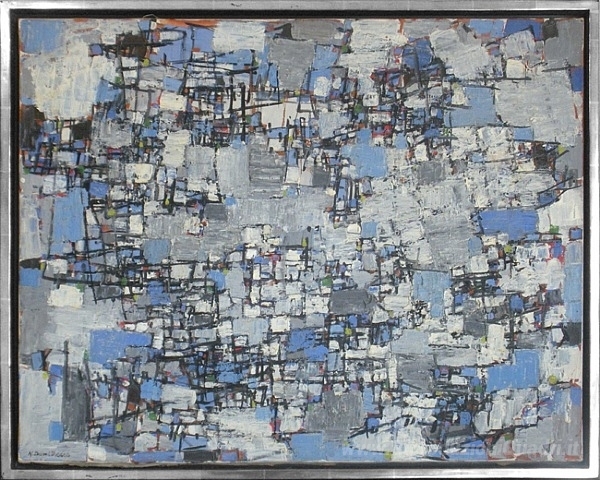Ti offriamo una riproduzione artigianale su tela dell'opera famosa 'Bleu' di Natalia Dumitresco, dal Museo delle Riproduzioni.