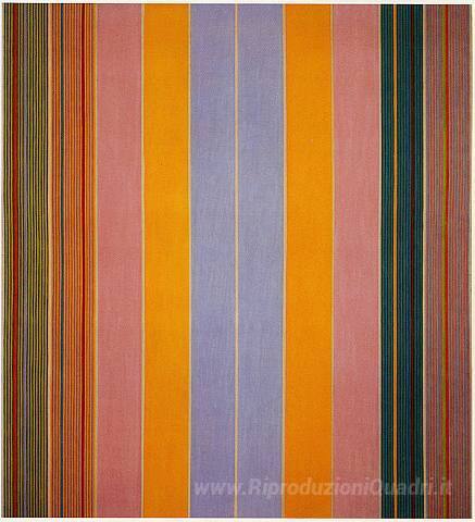 Ti offriamo una riproduzione artigianale su tela dell'opera famosa 'Blu Broad Salto' di Gene Davis, dal Museo delle Riproduzioni.