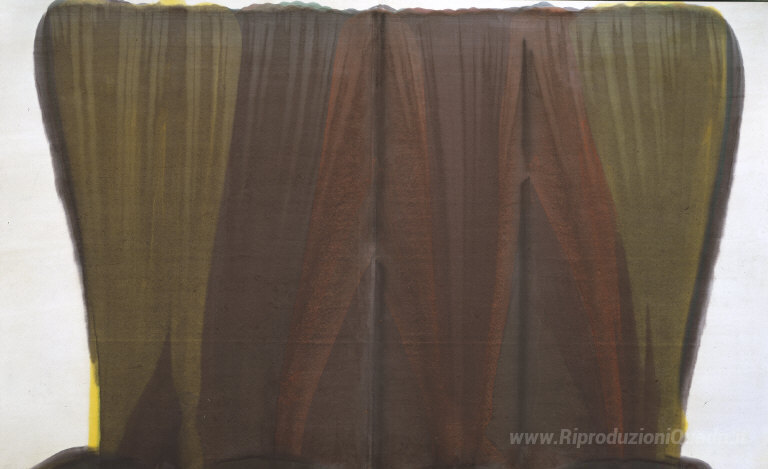 Ti offriamo una riproduzione artigianale su tela dell'opera famosa 'Broad Turning' di Morris Louis, dal Museo delle Riproduzioni.
