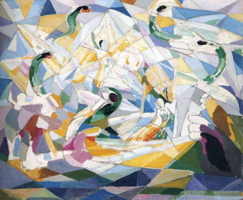 Ti offriamo una riproduzione artigianale su tela dell'opera famosa 'Cavaliere delle Rose' di Joseph Stella, dal Museo delle Riproduzioni.