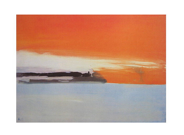 Ti offriamo una riproduzione artigianale su tela dell'opera famosa 'Chemin de fer au bord de la mer, soleil couchant' di Nicolas de Staël, dal Museo delle Riproduzioni.