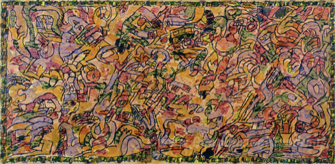Ti offriamo una riproduzione artigianale su tela dell'opera famosa 'Codice' di Pierre Alechinsky, dal Museo delle Riproduzioni.
