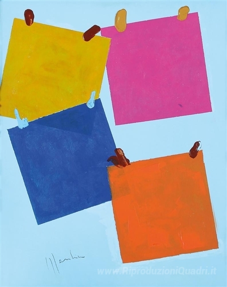 Ti offriamo una riproduzione artigianale su tela dell'opera famosa 'Collage' di Aldo Mondino, dal Museo delle Riproduzioni.