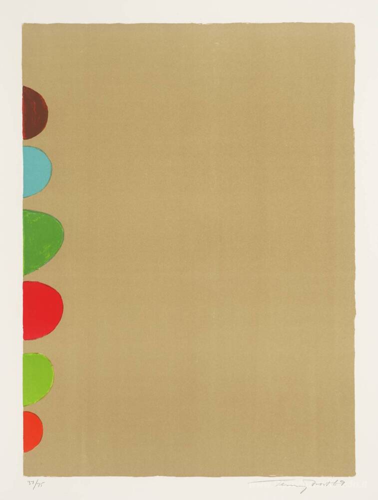 Lo stile di Terry Frost si distingue per l'uso audace del colore e la geometria contemporanea, elementi che si fondono in un sofisticato equilibrio visivo. Grazie a tecniche tradizionali e innovazioni moderne, ogni pennellata sul tela racconta una nuova sfumatura dell'esperienza umana. Incorporare il Colore sul lato nella vostra casa significa non solo decorare, ma anche arricchire l'atmosfera del vostro spazio, creando un ambiente vivace e stimolante che invita alla riflessione e alla creatività.