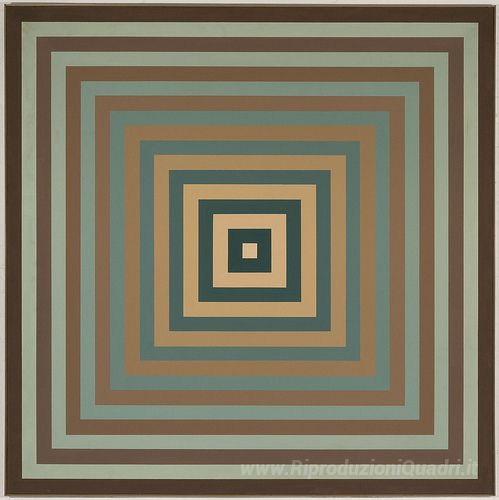Ti offriamo una riproduzione artigianale su tela dell'opera famosa 'Compenetrazione quadrangolare di causa ordini di chiarezze di To' di Mario Ballocco, dal Museo delle Riproduzioni.