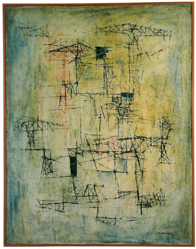 Scopri l'eleganza e la profondità espressive di Composizione 10-51, un capolavoro dell'artista giapponese-italiano Kazuo Nakamura. Questo dipinto a olio incarna la sintesi perfetta tra il linguaggio visivo orientale e la tradizione artistica italiana, offrendo una narrazione visiva che invita alla contemplazione e alla riflessione. La maestria di Nakamura nell'uso dei colori e delle forme conferisce all'opera un dinamismo unico, capace di catturare l'attenzione e suscitare emozioni intense.