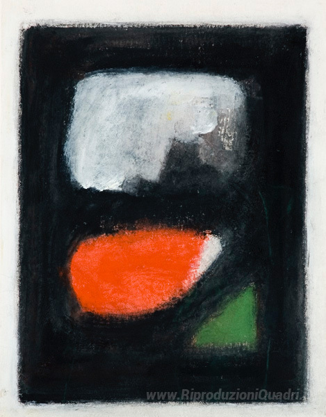 Ti offriamo una riproduzione artigianale su tela dell'opera famosa 'Composizione au fond cosmique' di Eugene Brands, dal Museo delle Riproduzioni.