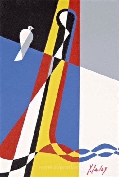 Ti offriamo una riproduzione artigianale su tela dell'opera famosa 'Composizione con uccello' di Yves Laloy, dal Museo delle Riproduzioni.