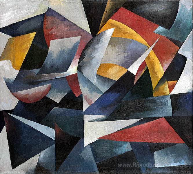 Ti offriamo una riproduzione artigianale su tela dell'opera famosa 'Composizione futuristica' di Aleksandra Ekster, dal Museo delle Riproduzioni.