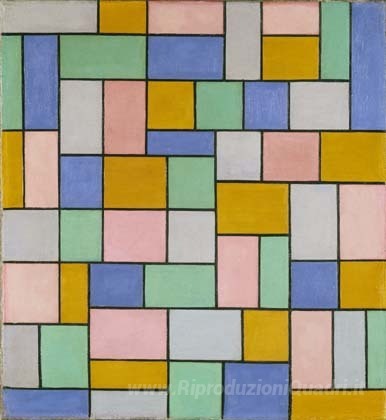 Ti offriamo una riproduzione artigianale su tela dell'opera famosa 'Composizione in dissonanze' di Theo van Doesburg, dal Museo delle Riproduzioni.