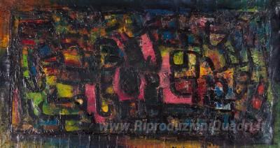 Ti offriamo una riproduzione artigianale su tela dell'opera famosa 'Composizione in rosso e nero' di Ralph Rosenborg, dal Museo delle Riproduzioni.