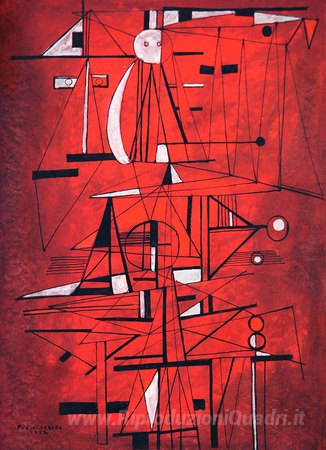 Ti offriamo una riproduzione artigianale su tela dell'opera famosa 'Composizione' di Rene Portocarrero, dal Museo delle Riproduzioni.