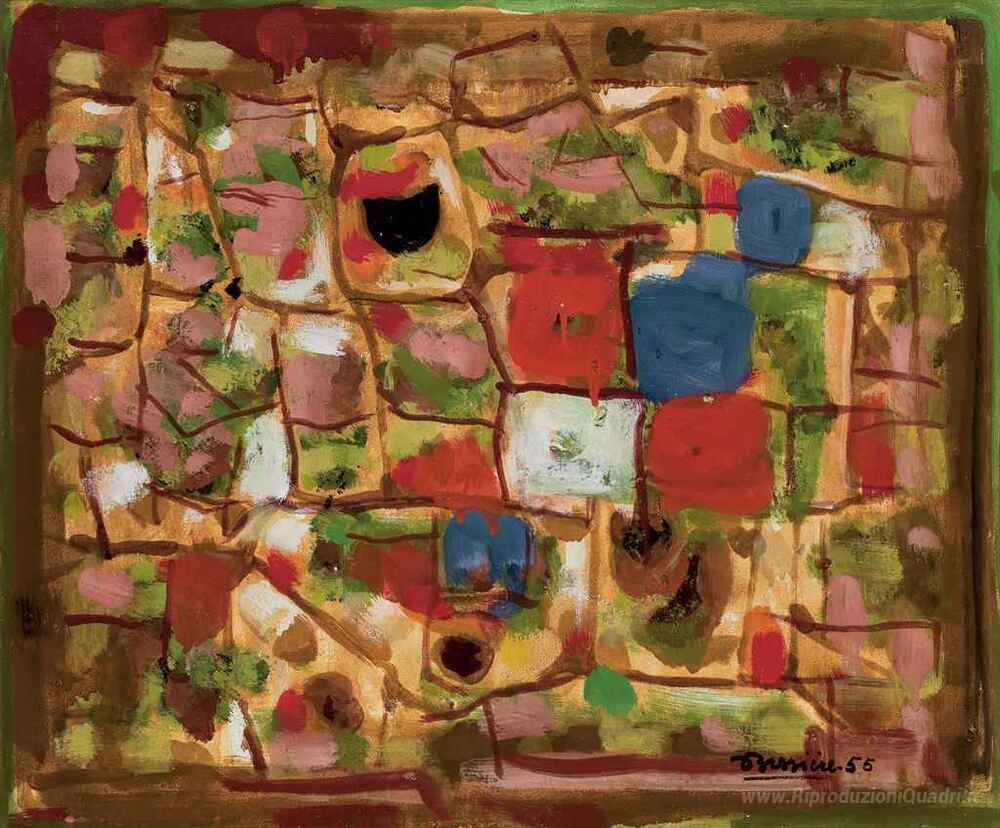 Ti offriamo una riproduzione artigianale su tela dell'opera famosa 'Composizione' di Roger Bissière, dal Museo delle Riproduzioni.